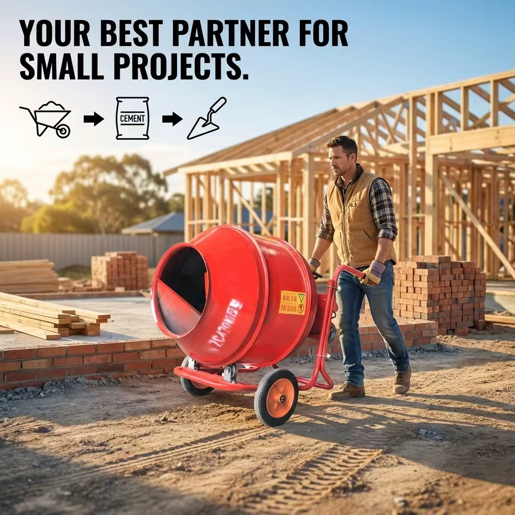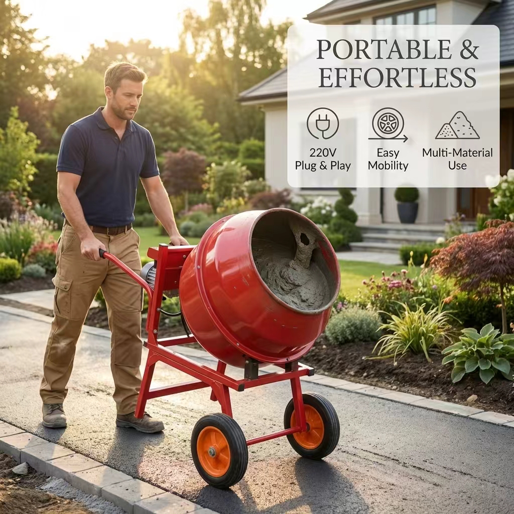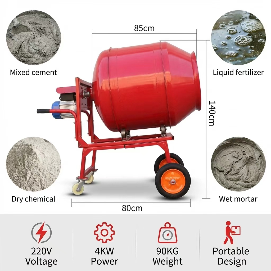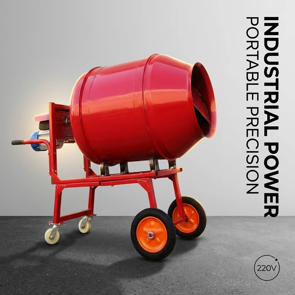 The hand-pushed drum mixer is a compact piece of concrete equipment that integrates both mixing and transport functions. Utilizing a drum-style mixing principle, it employs an electric motor to drive the rotation of the drum, causing the materials inside to continuously tumble and thereby achieve a uniform mixture. The unit is equipped with a hand-pushed frame and transport wheels, allowing it to be easily maneuvered across construction sites; it is particularly well-suited for project environments where space is limited or work points are dispersed.