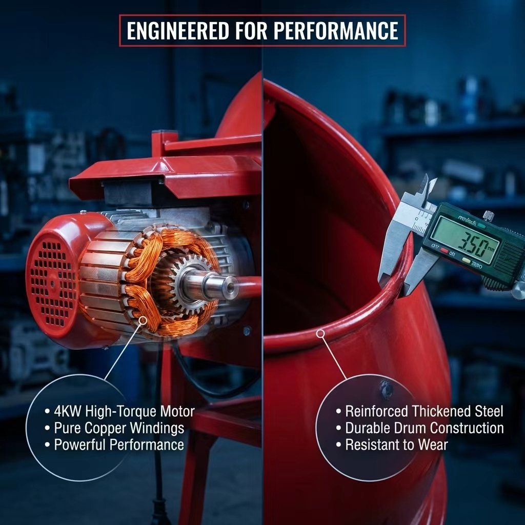 2. Uniform Mixing, Stable EfficiencyThe drum interior is fitted with mixing blades that ensure thorough material turnover and a high degree of mixing uniformity, making it suitable for a wide range of materials, including mortar and concrete.