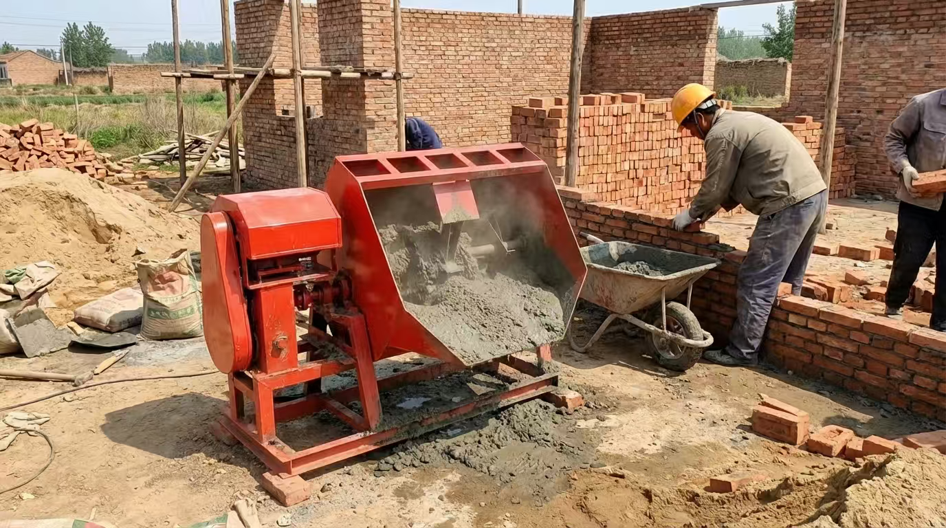 5. During operation, strictly prohibit inserting hands, wooden sticks, or similar objects into the top of the mixer, or attempting to clear mortar from the drum opening.