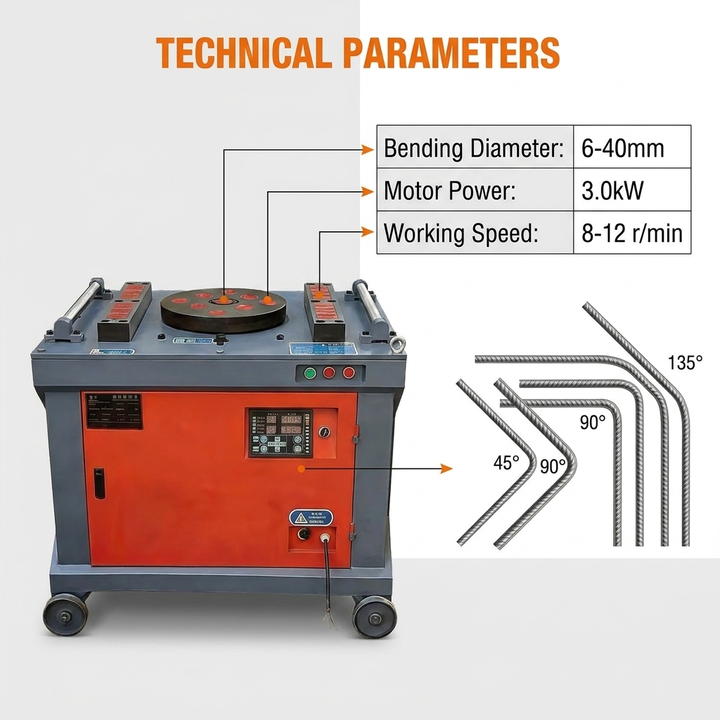 1. High-Precision BendingUtilizes a high-strength bending disc and positioning system to ensure precise rebar bending angles with minimal error, fully meeting engineering standard requirements.