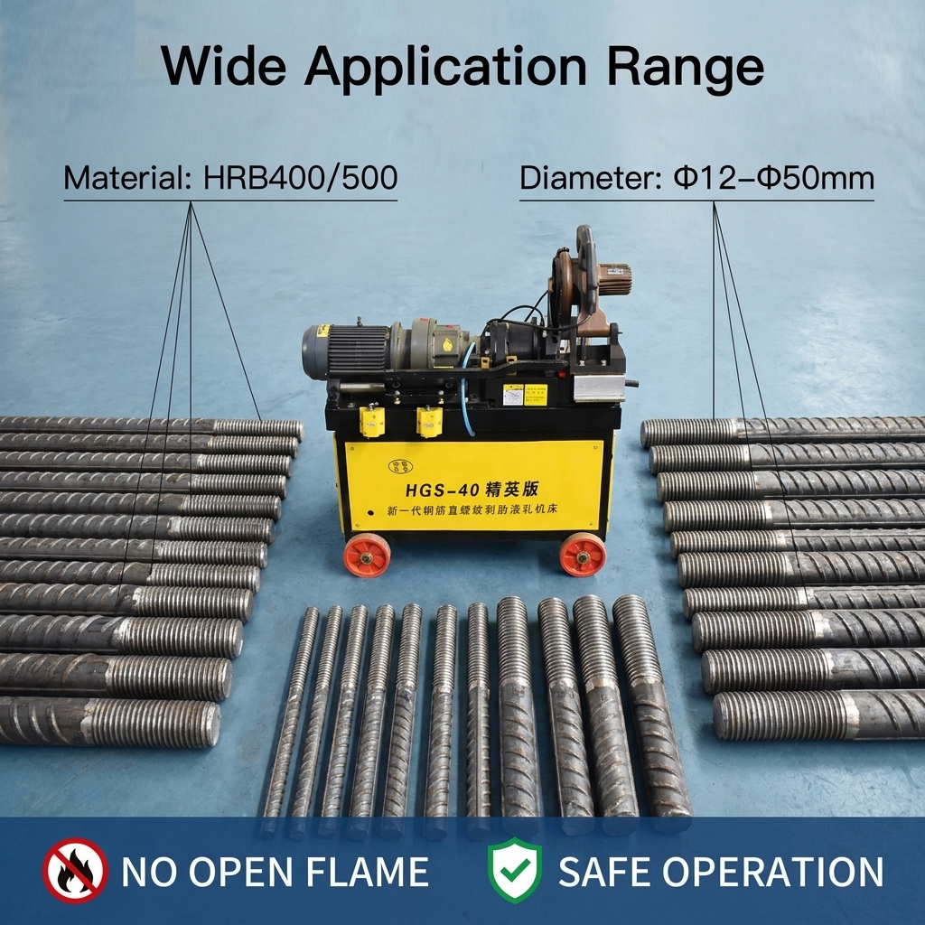 5. Wide Range of ApplicationsSuitable for:HRB400 / HRB500 steel reinforcement bars.Diameter range of Φ12–Φ50 mm (varies by specific model).
