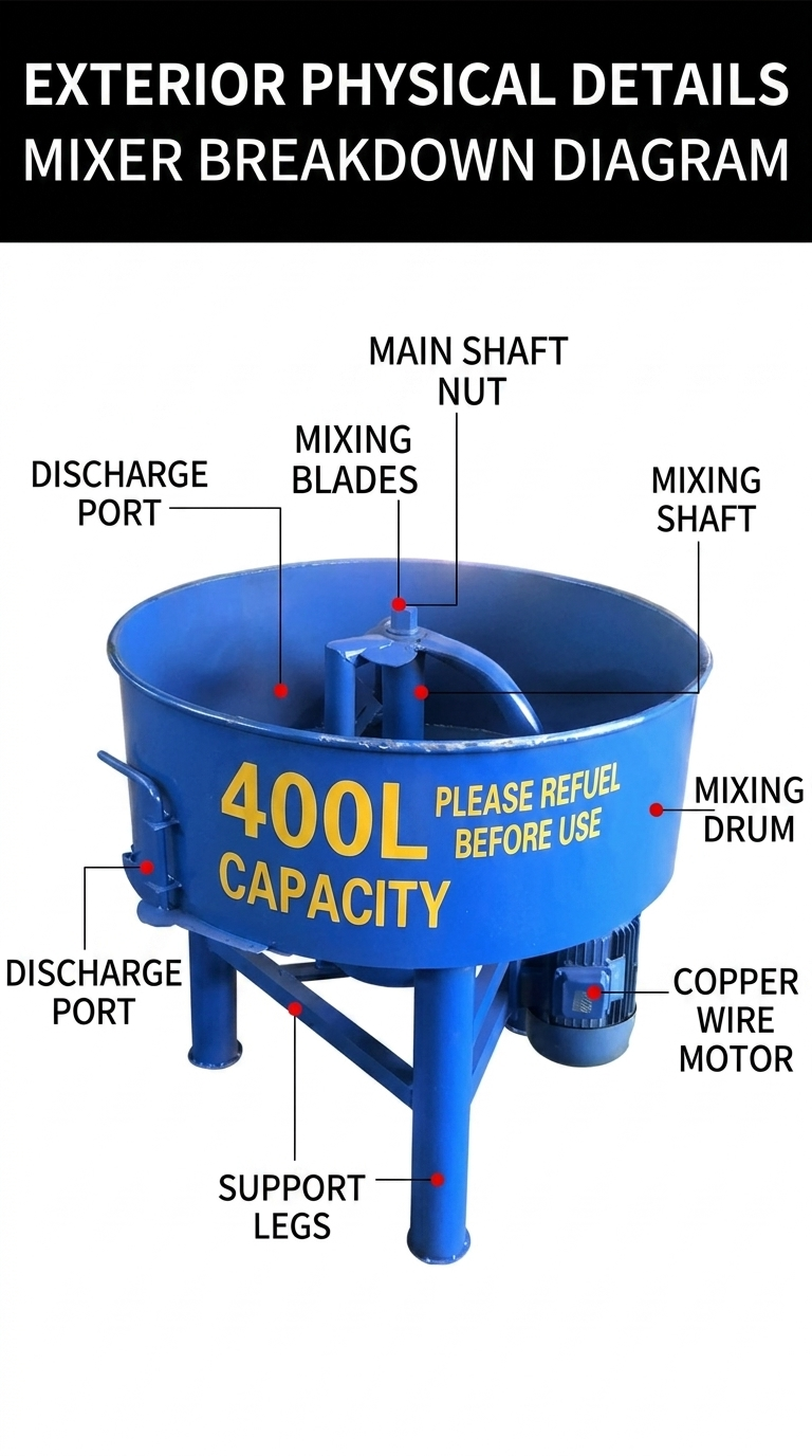 6. If a malfunction occurs during operation and mixing cannot continue, immediately disconnect the power, pour out the mortar from the bucket, and only resume use after troubleshooting.